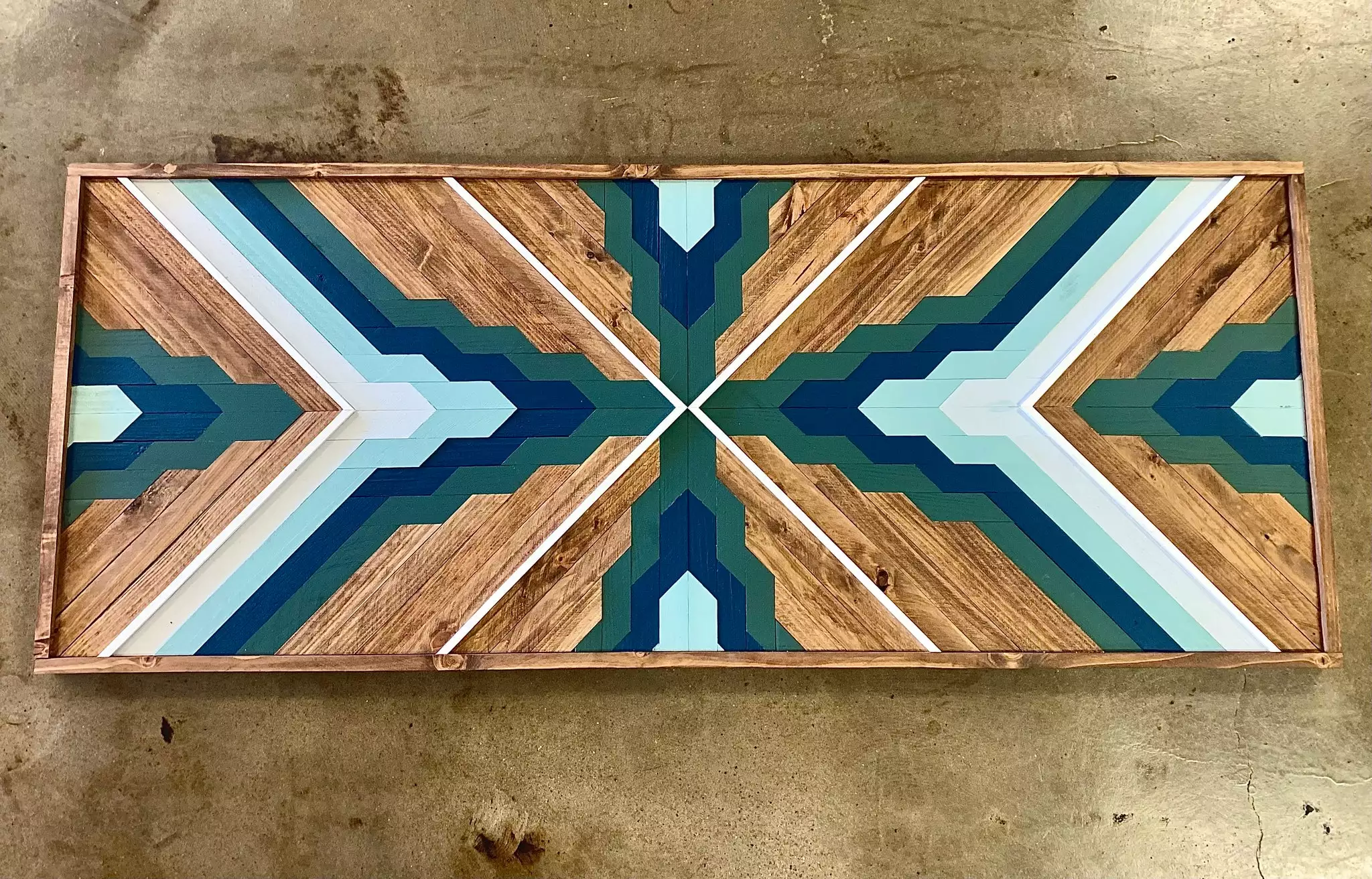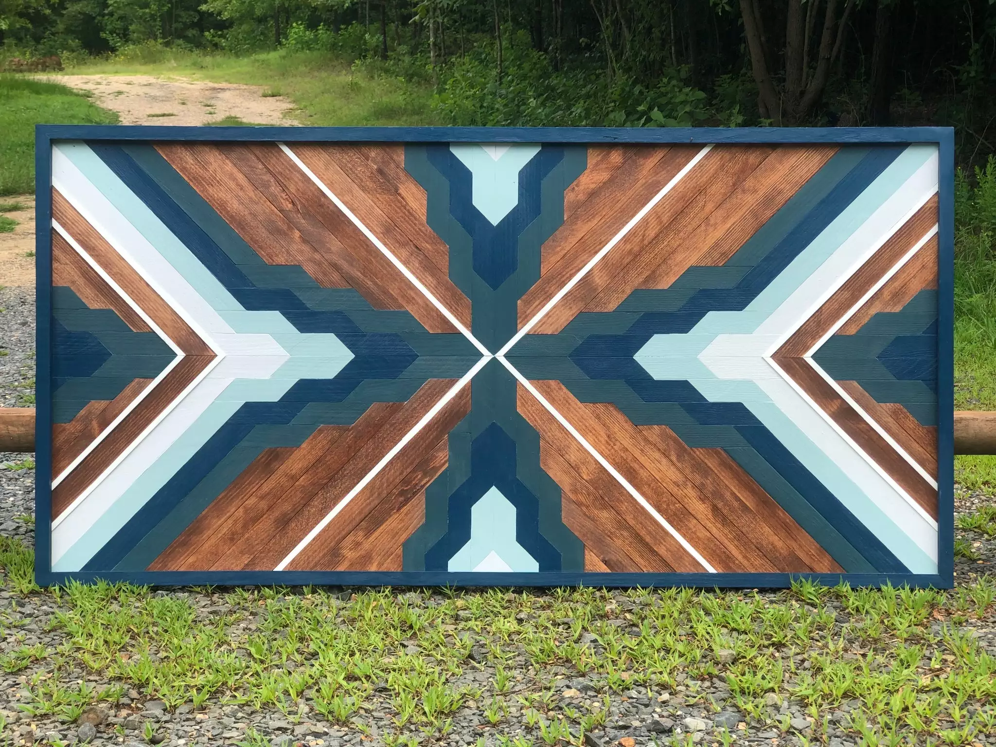 A beautiful mosaic made of blues and brown tones. Made by Lia Parker in Atlanta, TX
