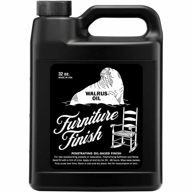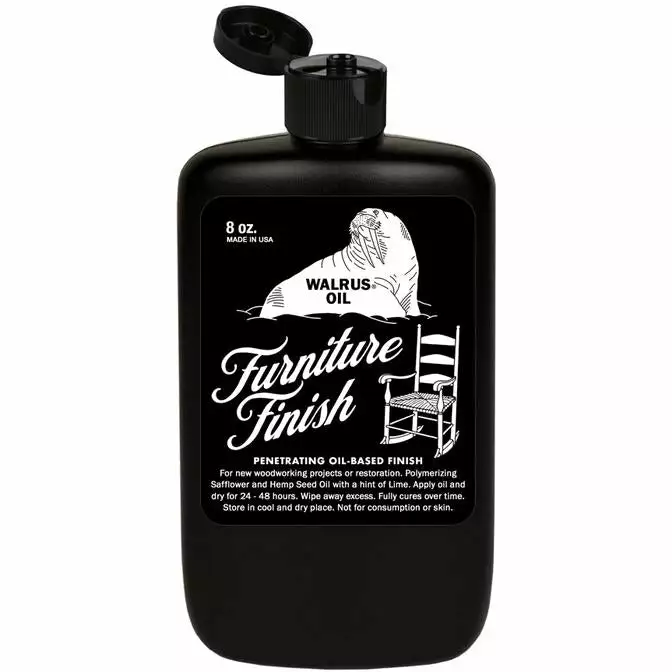 Walrus Oil’s Furniture Finish is a penetrating oil-based finish that soaks deep into hardwoods, pulling out natural wood colors and tones, and locking them in permanently. There are no dyes or added dryers, which can cause yellowing in the wood. Furniture Finish is completely natural, vegan friendly, and made of Polymerizing Safflower Oil, Hemp Seed Oil, Tung Oil, Perilla Seed Oil, and a hint of Lime for freshness. Ideal for hardwood chairs, dressers, picture frames and more. Safe for food-contact surfaces. Cures to a beautifully smooth matte finish.